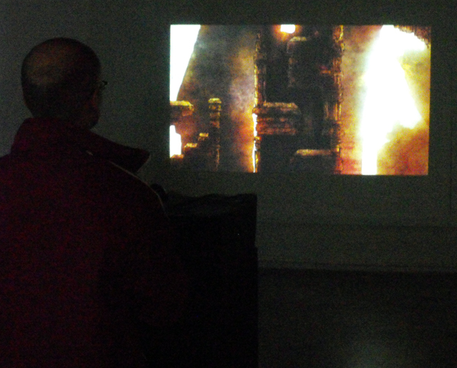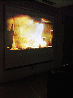 I had two projections of the game on either wall, and accompanying music by Nicholas Singer playing through two sets of headphones. Most people got the idea, and I was pretty happy with how it all turned out.